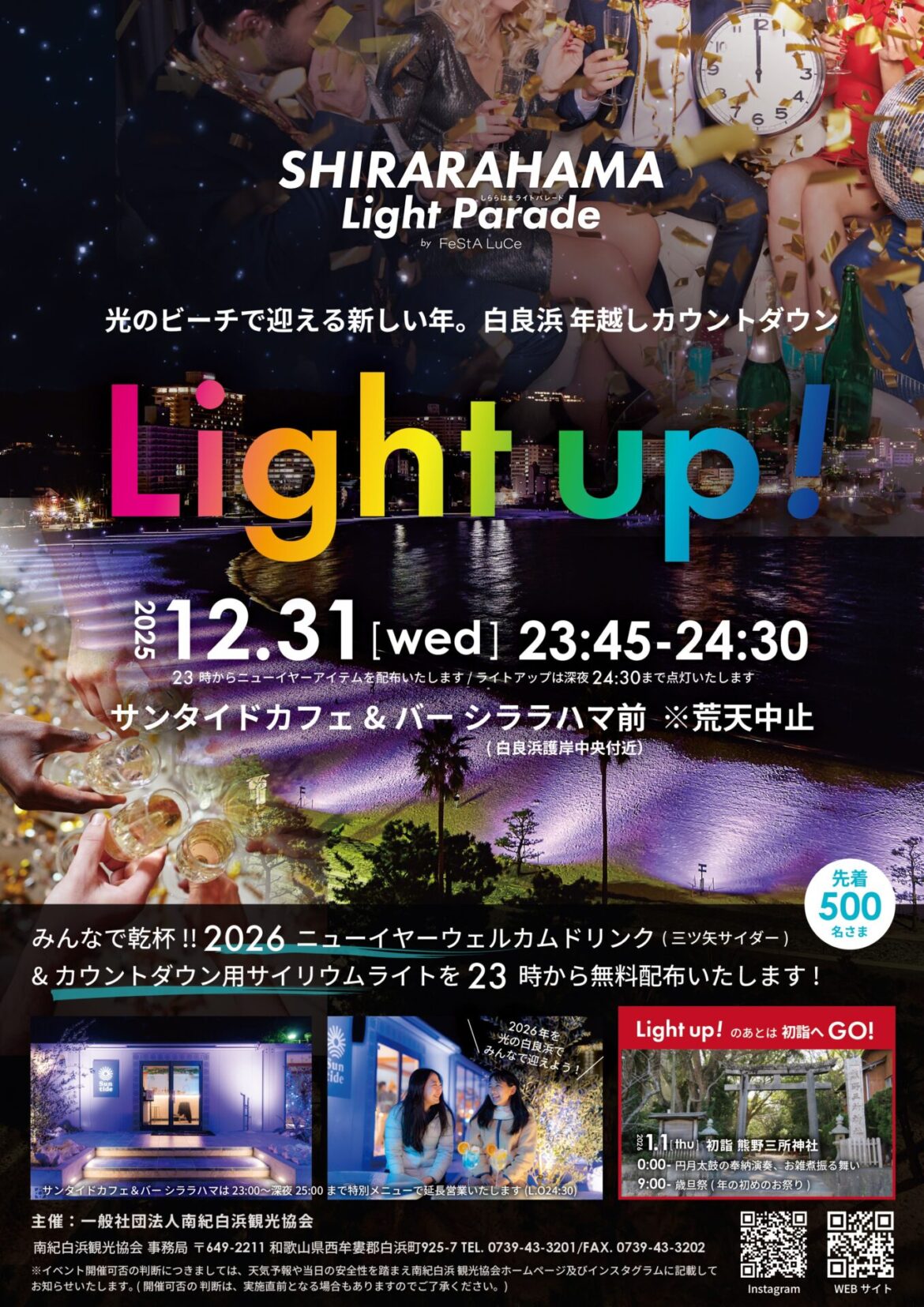 今年の年末カウントダウンイベントには、花火が無い! まことに残念!(>_<) どうして、こうもコロコロと内容が変わるのでしょうか‥不思議です。 白浜での最大の楽しみは夏の花火であり、年末のカウントダウン花火だと個人的に思っています。 今年の年末カウントダウンイベントはライトアップイベントだそうです。 新たな感動を期待したいですね(^^♪